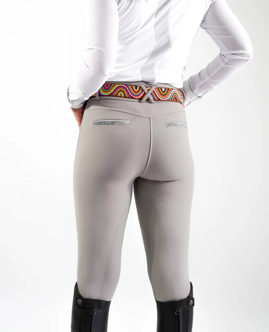 Le grip sur la face intérieure des genoux et parfois sur l'ensemble du pantalon que l'on appelle Full Grip, sont un élément clé des pantalons d'équitation. Fabriqué en silicone ou en matière renforcée. Pour le Full Grip il procure un meilleur maintien dans la selle, utilisé au départ par les dresseurs, le public s'élargit sur des cavaliers multi- discipline.